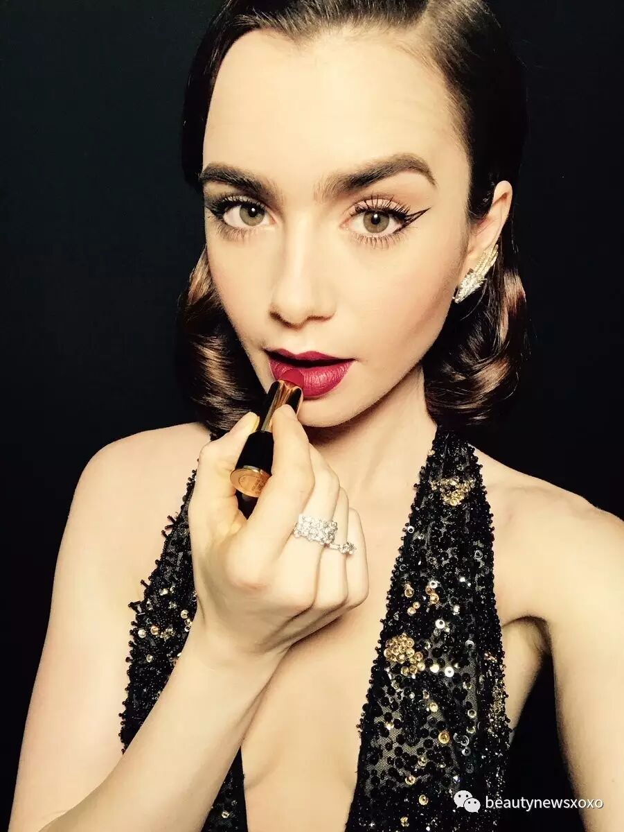 莉莉-柯林斯涂兰蔻唇膏走奥斯卡红毯