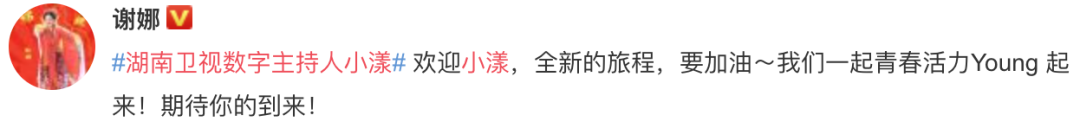 谢娜、芒果、快本、天天向上特意发博欢迎。