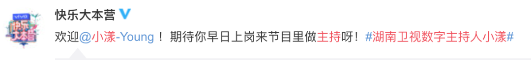 给大家科普,新人叫小漾,芒果台的实习主持人。