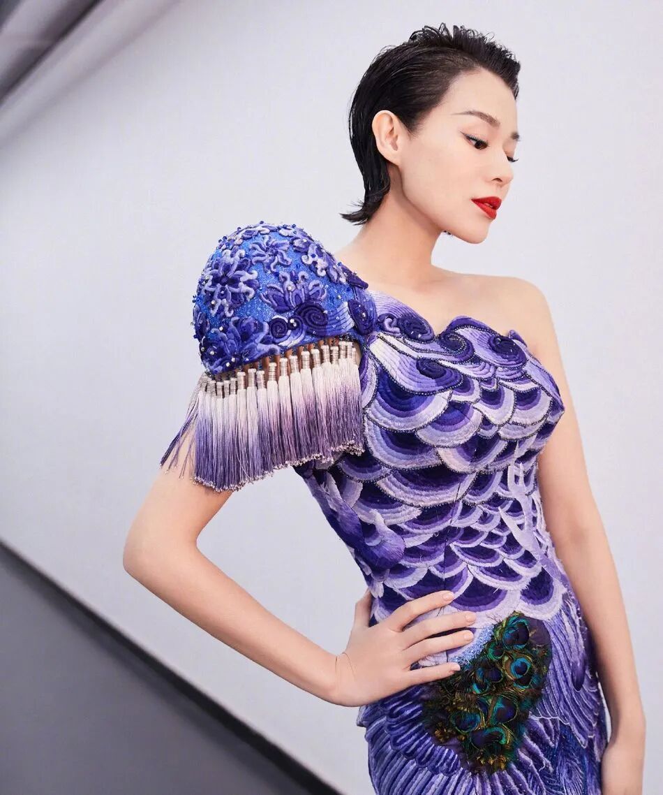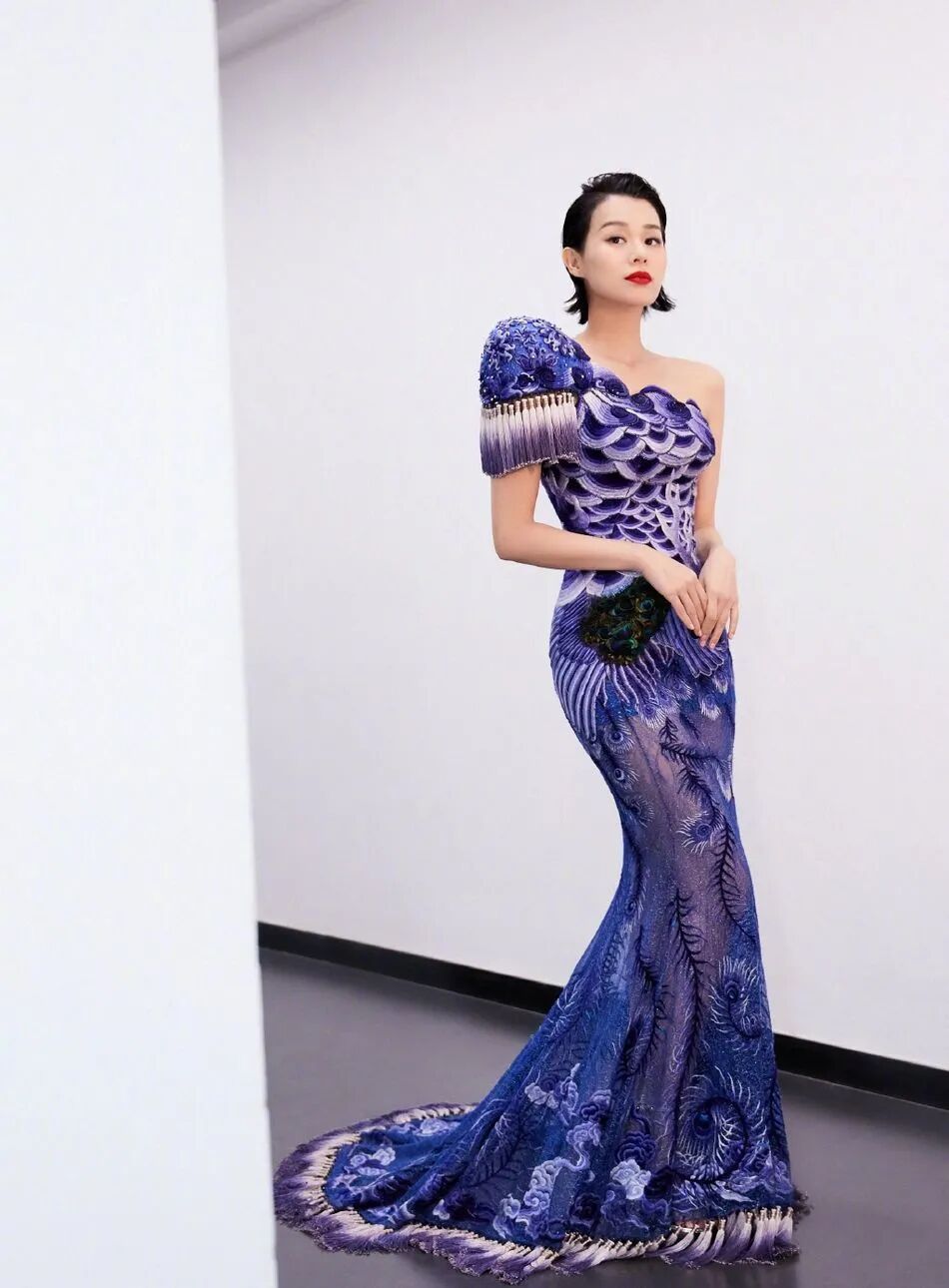 大家对胡杏儿的变化模式也是非常的熟悉,毕竟在穿搭上,胡杏儿的确给了大家非常多惊喜。下图照片中,胡杏儿穿了一件深紫色鱼鳞款式的紧身鱼尾裙,胡杏儿可塑性太强!一会可以超模,一会又可以当普通路人!