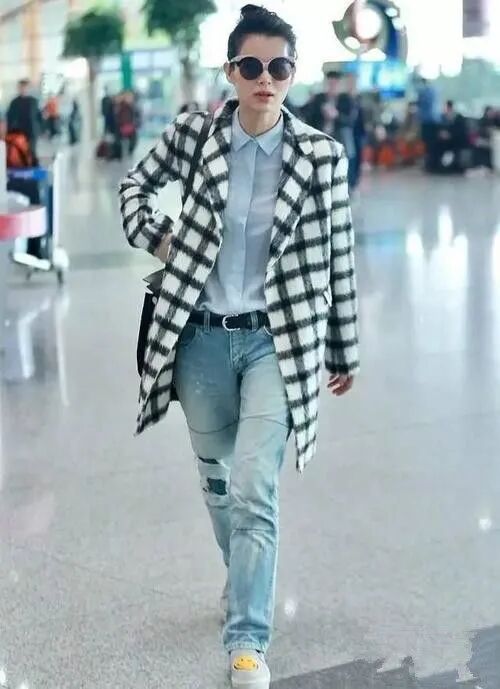 在气质上来讲,胡杏儿的气质也是属于高贵冷艳型的,下图照片中,胡杏儿穿了一件黑色打底衫搭配红色加灰色的格子风衣外套,看起来非常的显气质和显身材!