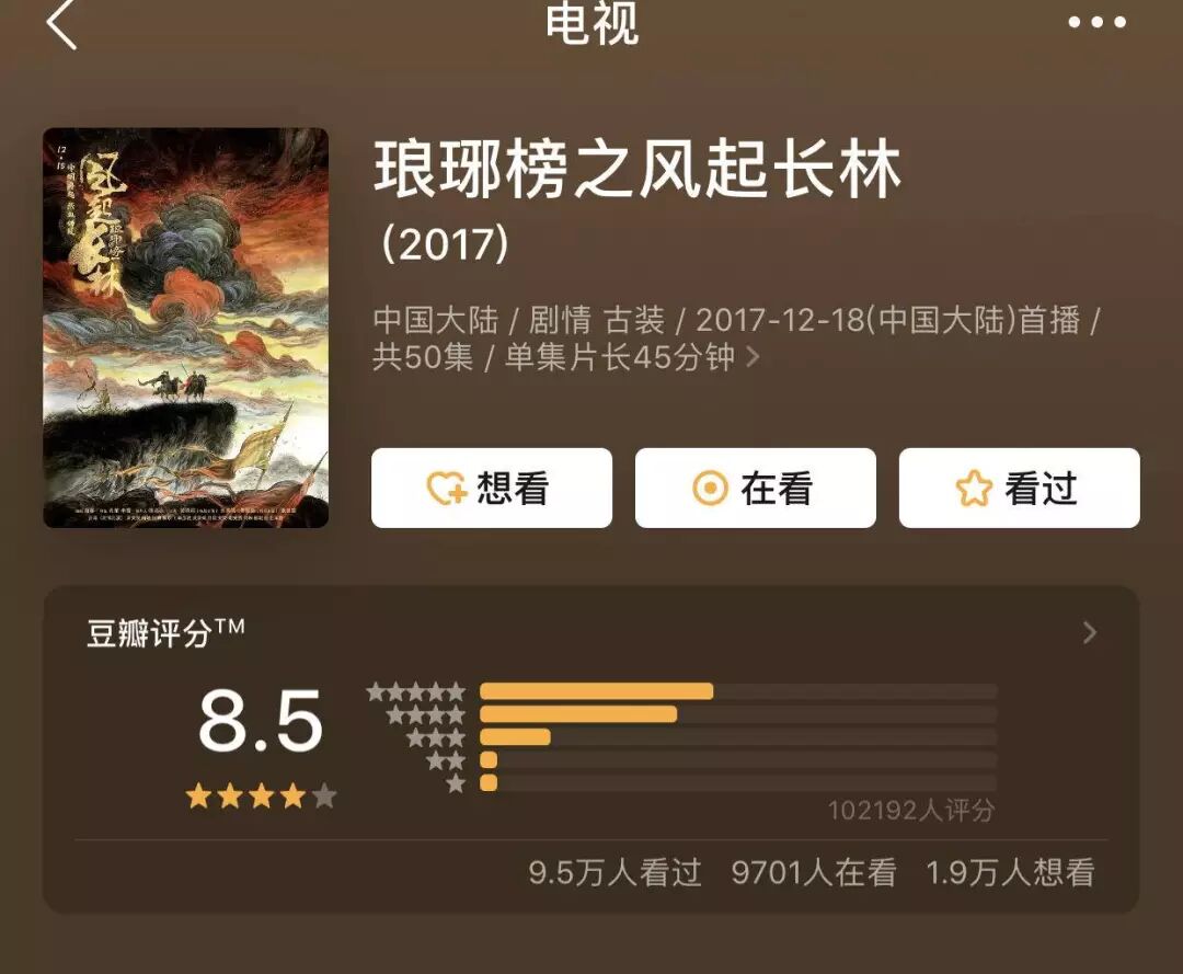 这部剧虽然一开始并不叫好,但后来口碑和评分都不错,将近10万人标记,平均分拿到了8.5分。