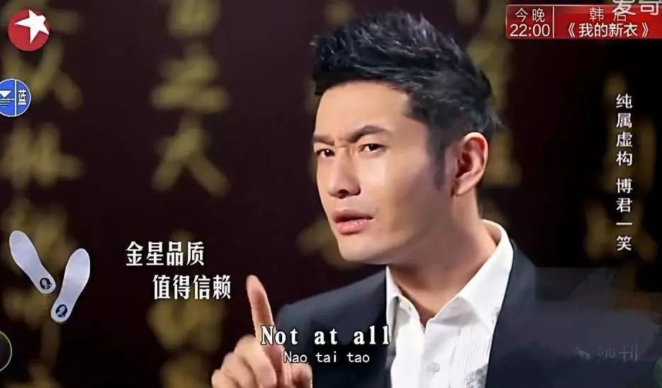 黄晓明在演唱奥运歌曲《One world One Dream》时把“not at all”发音发得很像“闹太套”,也被嘲笑了好久。