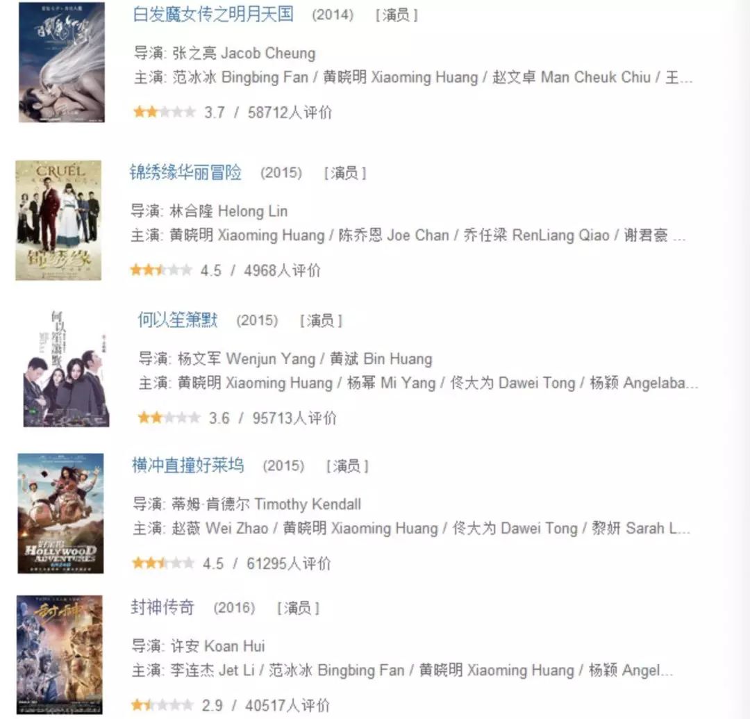 《中国合伙人》过去没多久,黄晓明又拍了一系列烂片,让粉丝两眼一黑。