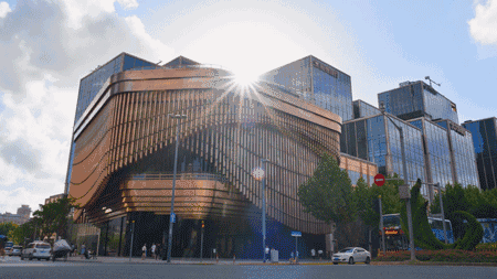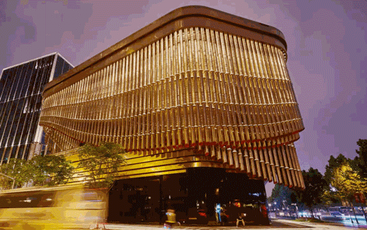 外层金色帘幕让复星艺术中心成为“会跳舞的房子”