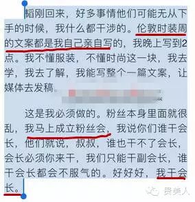 你li韬韬还在父亲的安排下,签了一家小型经纪公司,所有的宣传文案、微博、贴吧这些社交平台更是由父亲这个外行人操作,他甚至担任儿子粉丝会的会长↓