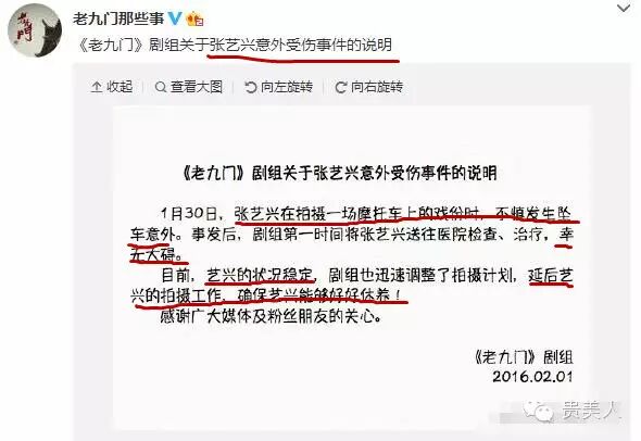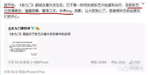 事发后,《老九门》片方奏赶紧着给了大家一个交代,正式出面说了说张艺兴受伤的情况↓