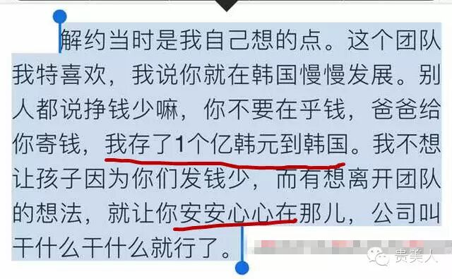 你li韬韬到韩国发展,当练习生直到以EXO团队出道,基本没挣过钱,还落得一身病~为人父母看在眼里痛在心里,于是黄爸爸便大手一挥,直接奏甩了一亿韩元给韬韬↓