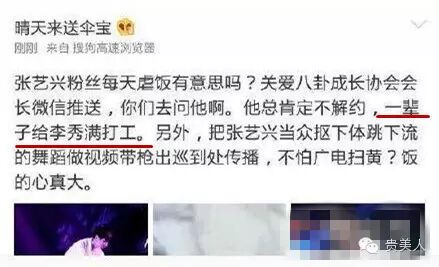 奏在这个时候,你li韬韬的粉丝却沾沾自喜,兴奋的不得了~还说什么小绵羊摔伤是报应来了,嘲讽小绵羊不敢解约要给李秀满打一辈子工之类的balabala↓,最起码伦家也没像你li韬韬似的假受伤来博同情啊对吧~~
