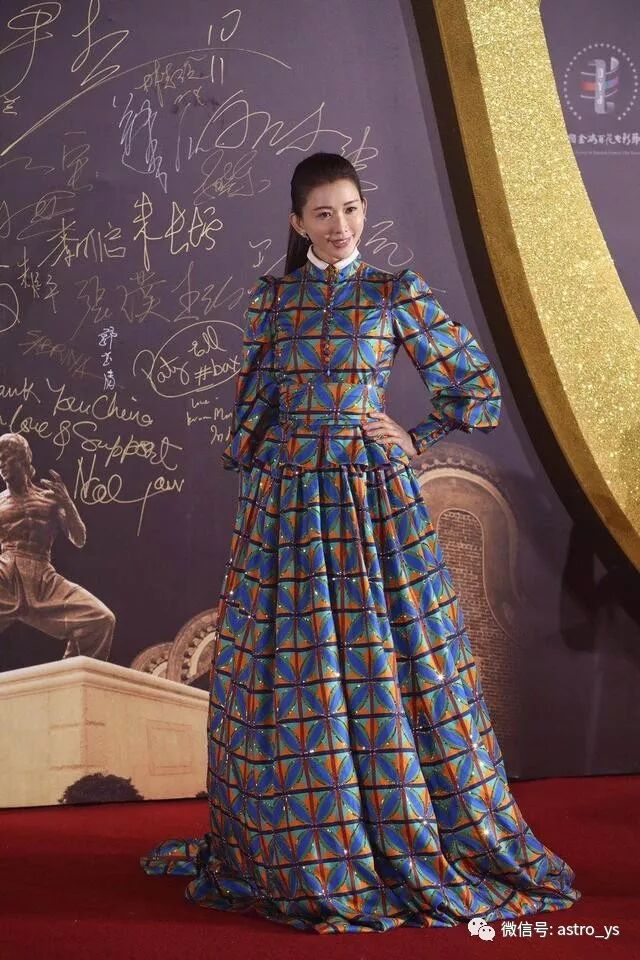 但是这么会穿,又风格百变的林志玲,也有发挥失常的时候,比如这一身缎面材质的礼服,这包裹得严严实实的设计实在不适合林志玲展现她的优势即身材。