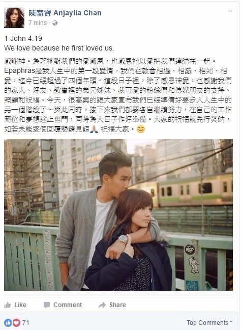 今年7月宣布同夏雨个仔黄奕晨(Dixon)拍拖