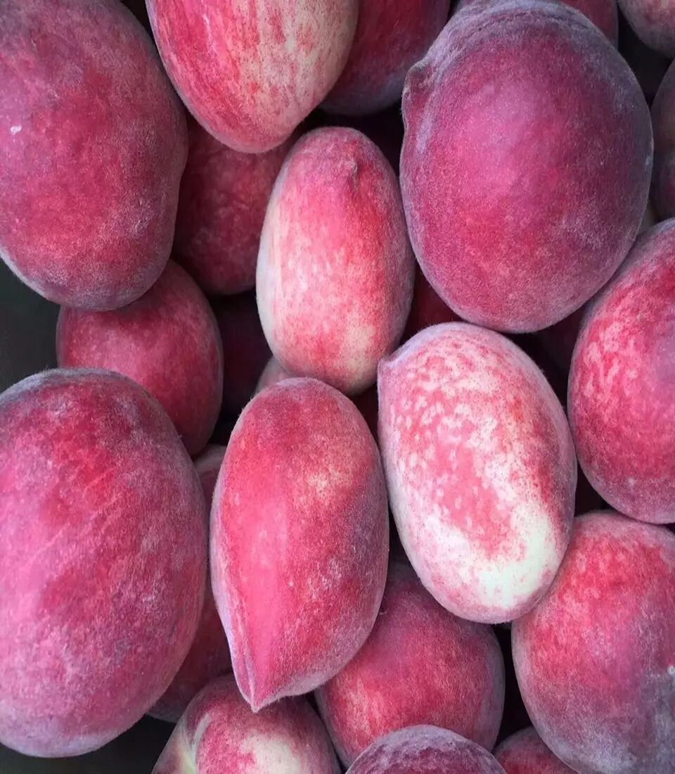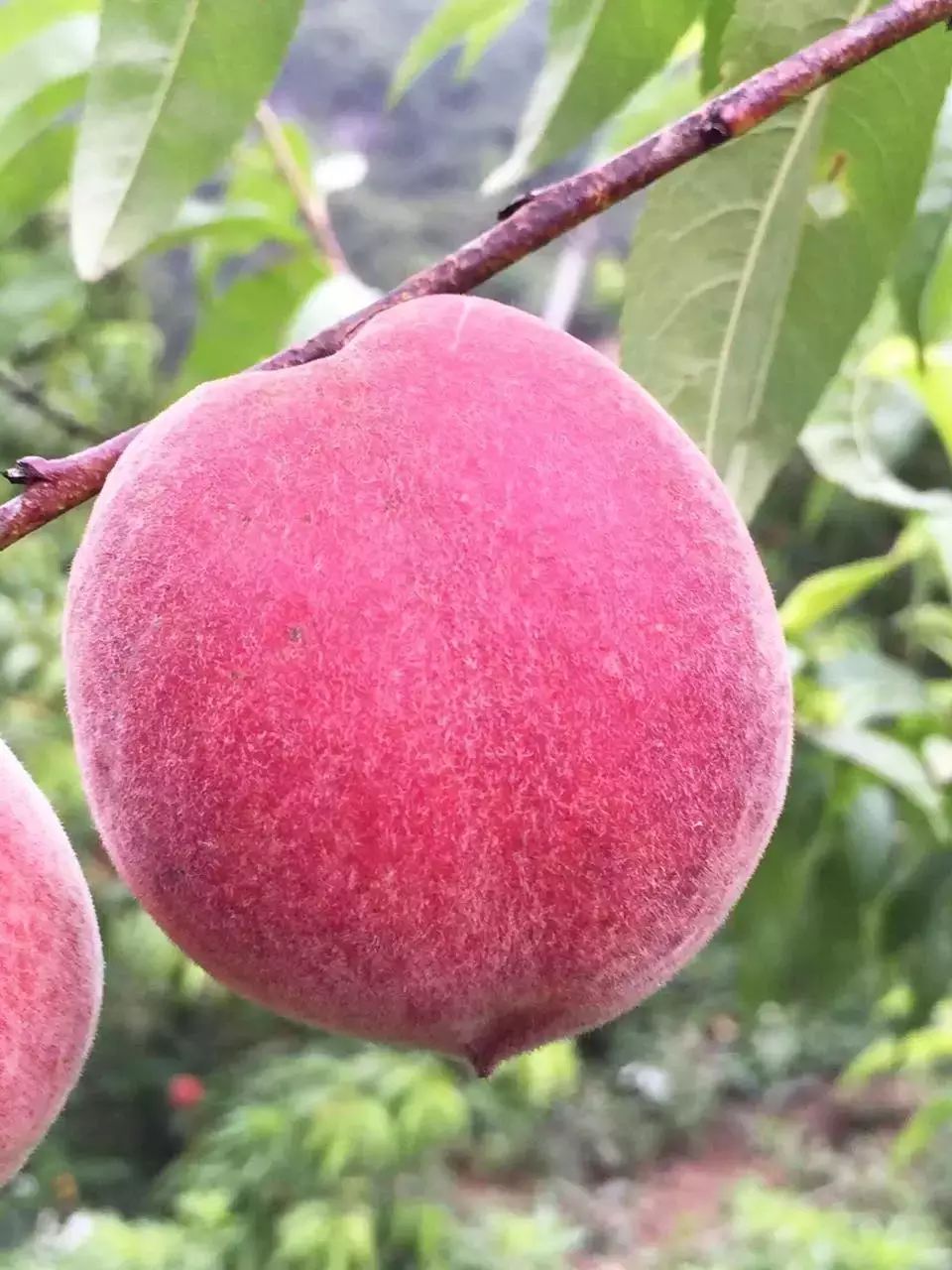 清江村富硒大红桃属于早熟桃,一般在5月中旬成熟上市。目前是贵州省内上市最早的桃类品种,也是开阳县唯一的一家大红桃品种。清江村大红桃因为成熟时间恰到好处,所以正好填补了市场桃类品种淡季的断档期。该桃成熟时果面90%以上为鲜红色,外观极为艳丽,果面绒毛浅而少。在同期成熟桃中着色最佳,背阳面乳白色,成熟全面乳红,如同套袋桃,亮丽鲜红,品相极佳。果肉口感青脆,并带有红色条纹,含糖量约为13%,完全成熟后甜度可达16.8%,桃香四溢,入口后口齿留香。果形漂亮,果实近圆形,果顶微尖,缝合线浅,平顶中桩,半离核,核小,可食率高。果实硬度大,耐贮运、可留树10天以上不落果、不裂果且抗病力强,果实大型,果个均匀,平均单果重250克左右。