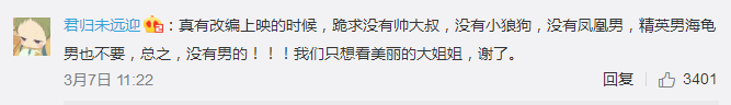 还有给未来制作团队打预防针的:不要有男人!