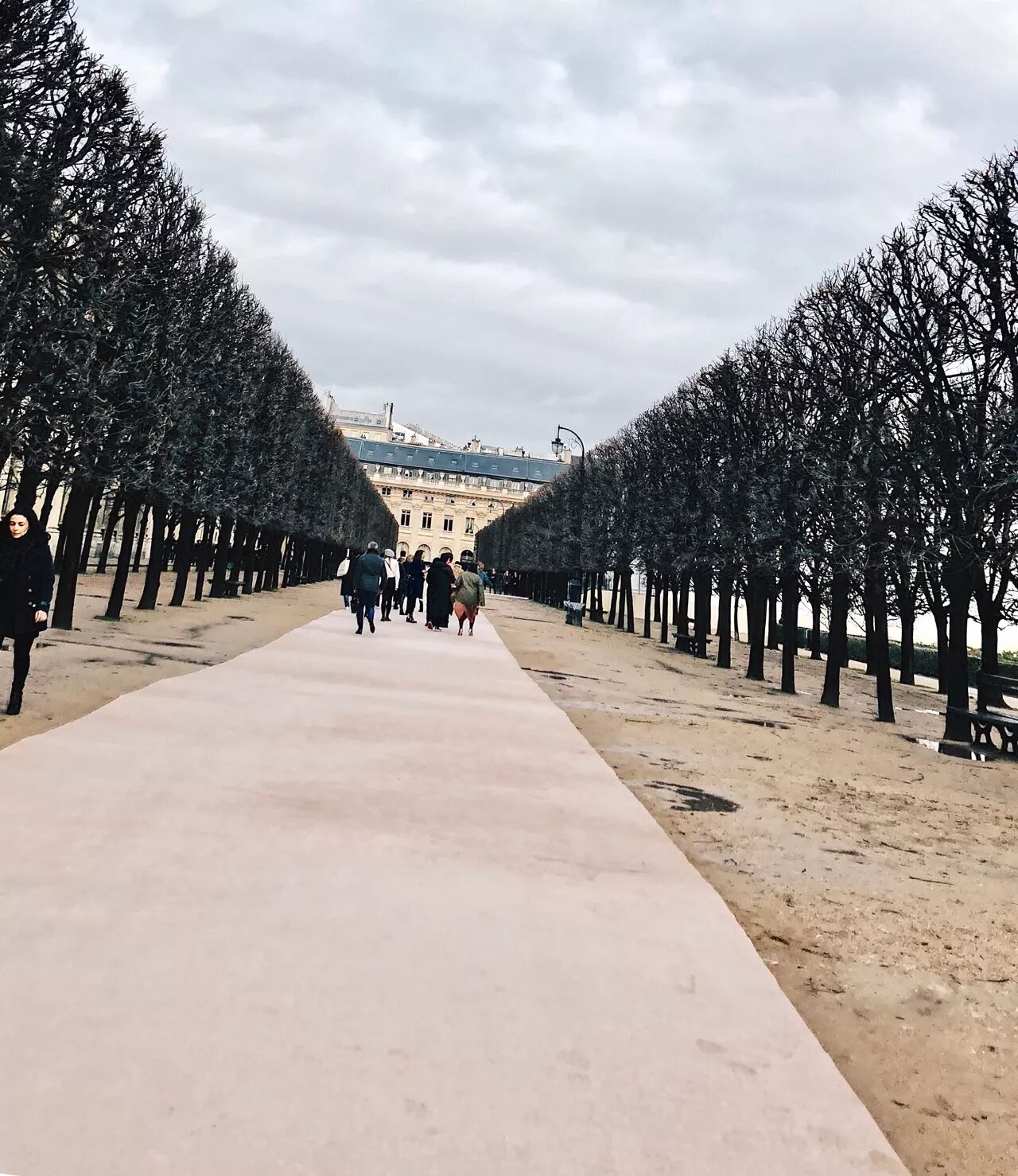 LV 2018 秋冬系列男装大秀依然选在卢浮宫附近举办,本来早上还在下着蒙蒙细雨,结果到了临近秀开始的时候,天放晴了,而且天空超蓝。
