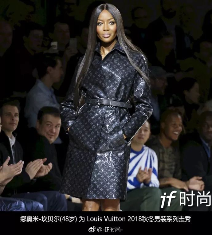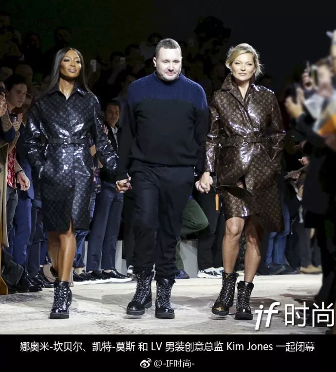 if 姐心想一定有惊喜降临,屏住呼吸等待——原来是娜奥米-坎贝尔和凯特-莫斯两大英伦传奇超模一前一后穿着LV 的风衣走上秀场。