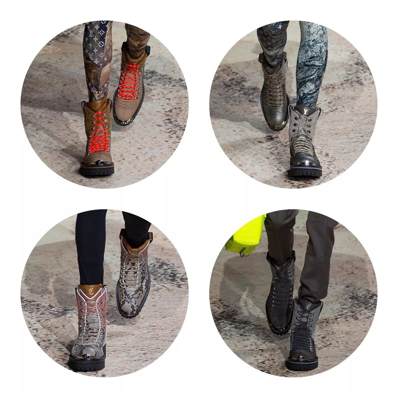 混杂糅合的思路在鞋履设计中也不断延续:牛仔靴元素与登山靴风格同时出现;已成经典的训练鞋换上奢华的蟒蛇皮。