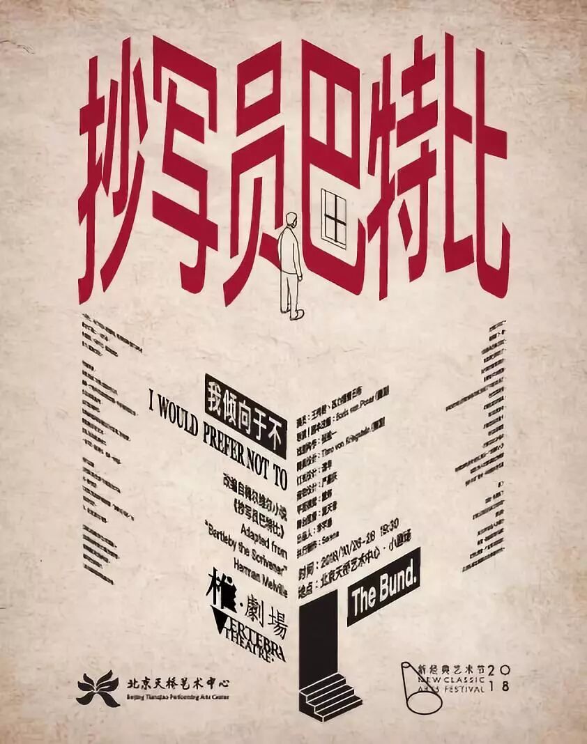 经过多次讨论,主创们最终决定把戏中核心台词“I would prefer not to”翻译为“我倾向于不”。这个暗语一样的句子是《抄写员巴特比》原著小说最吸引王传君的一点,虽然句式听起来有些拗口,但据说在工作中用来拒绝“客户”,还真的奏效。显然,这戏教人学会拒绝,当然也不止于此。