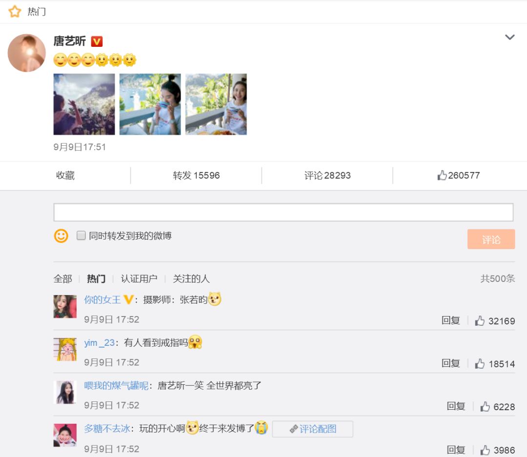 刚被爆领证,随后又有眼尖网友发现,唐艺昕这次晒出的照片手指上戴着戒指。