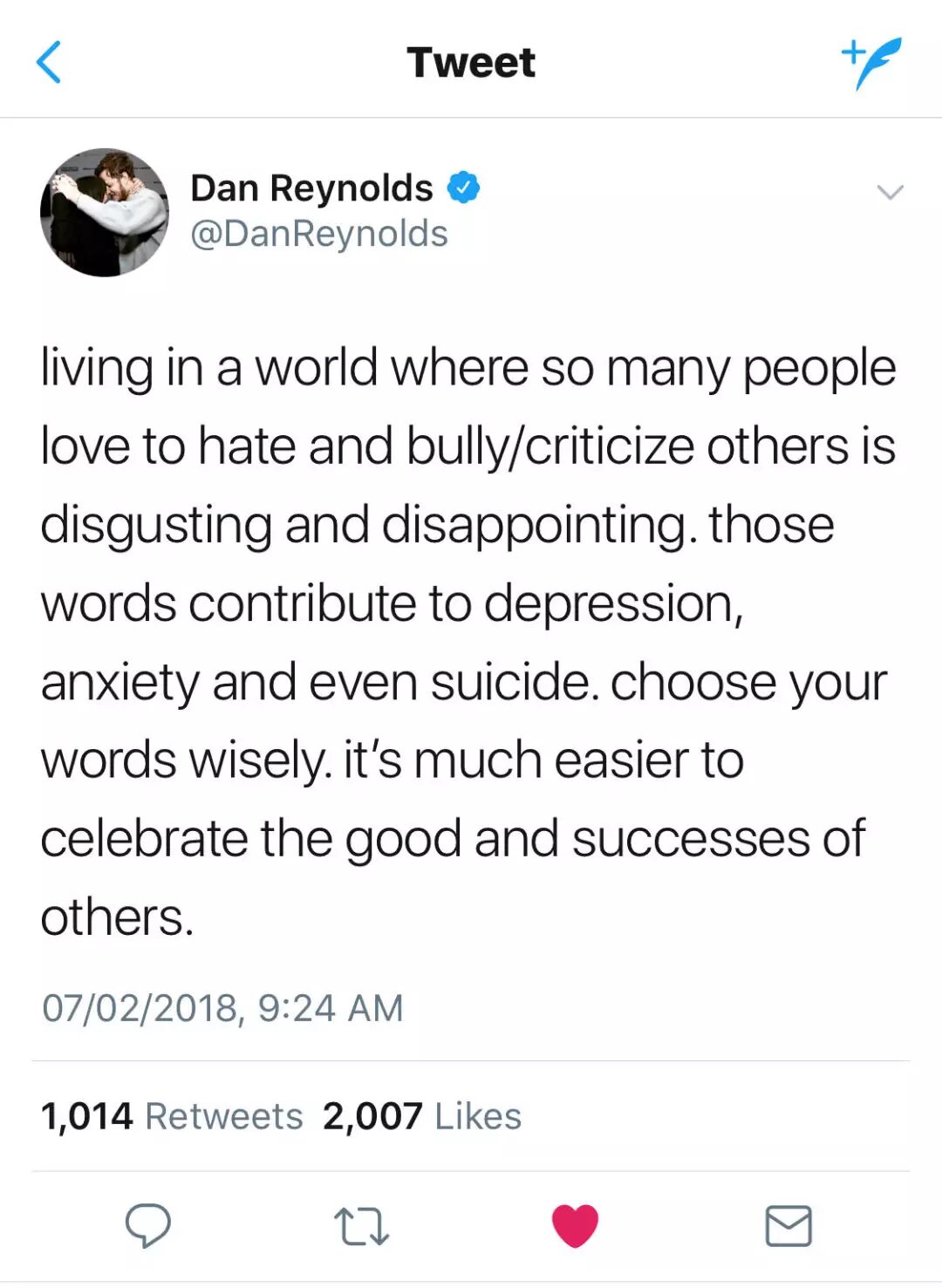 *生活在这样一个人们热衷于憎恶、欺凌、批判的世界是令人反感和失望的。谨言慎行,为他人的成功欢呼。