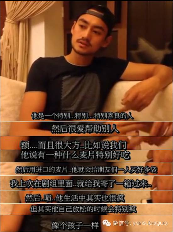 李易峰2014年的采访里说马天宇很会照顾别人,而且心态特别好,工作完了就出国旅行。