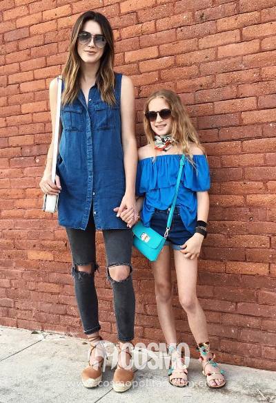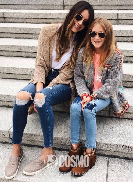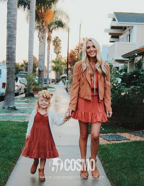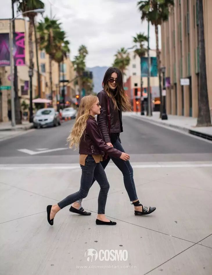 还可以像Cindy Crawford 和女儿Kaia Gerber选择类似款式的机车外套,搭配牛仔单品和短靴,两人并肩出街的画面更像是穿了一身“姐妹装”。亦或是选择类似的连身裙、或者带有毛绒元素、牛仔等相同元素的单品搭配更多风格的服饰。细节保持一致,更能看出你的搭配小心思。