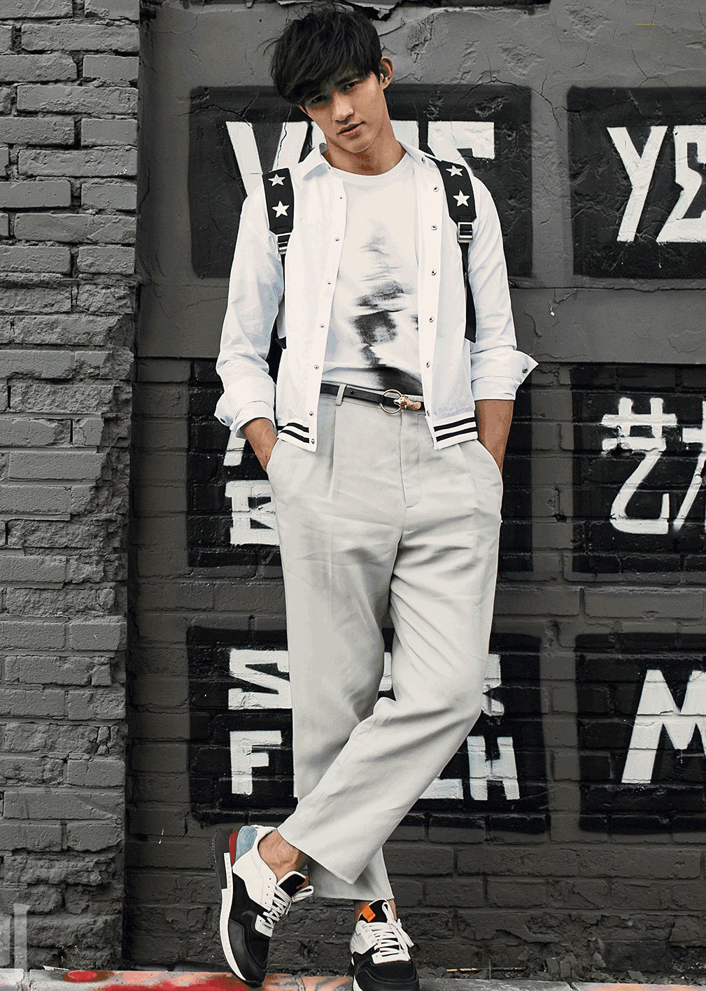 《我的朋友陈白露小姐》中年少轻狂又深情款款的陈言让人印象深刻,也正是从这部剧开始,屈楚萧正式进入了大众的视线。这个一笑就嘴角微微上扬的大男孩总是能让人联想到学生时代那个又远又近的校草。白体恤加上gxg.jeans的印花棒球衫,轻轻松松凹出街头达人STYLE。
