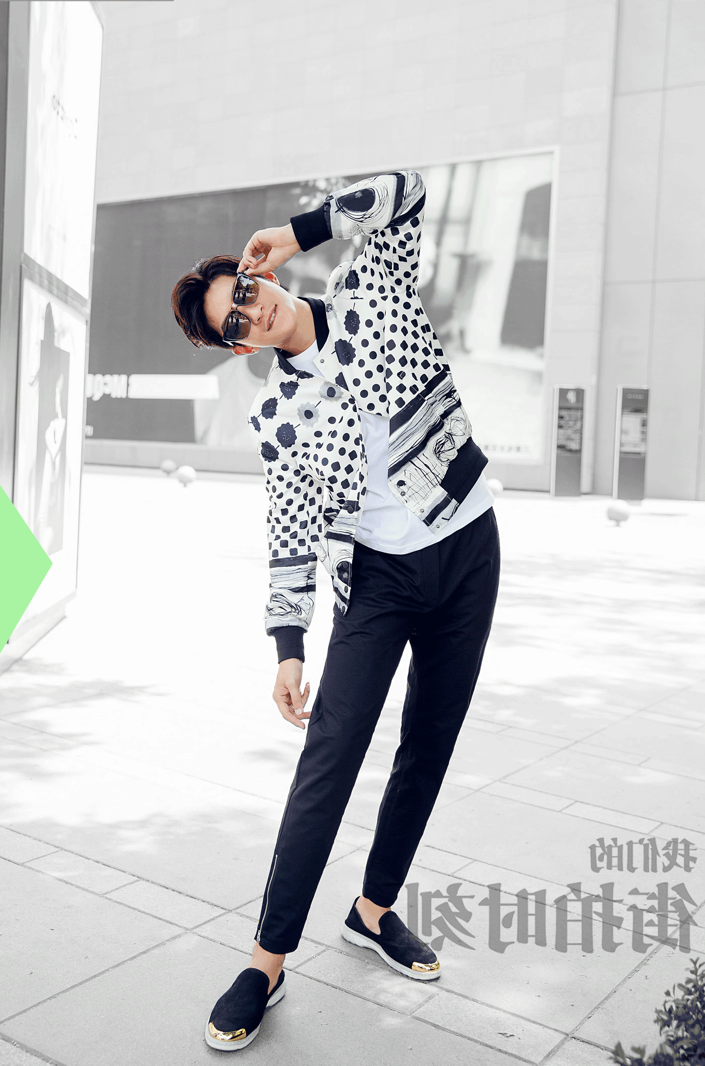 从《小时代》中的周崇光开始,陈学冬就一路都披着时下最hot的流行单品,闪闪发光地从这部戏走到那部戏,时尚这个词似乎就没离开过他。大长腿,棱角分明的轮廓,浓眉大眼,穿上gxg.jeans的黑色皮衣,一下子就变得英气十足,休闲又有型。