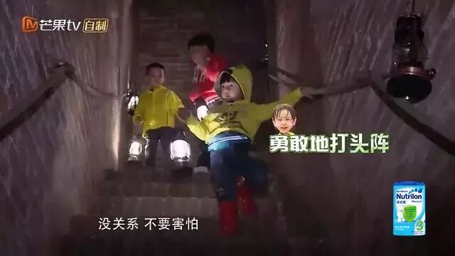 弟弟Max 在地道探险中虽然心里害怕却没有哭,坚持走前面打头阵。