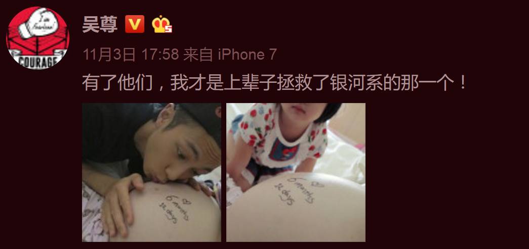 然而,吴尊却在微博上表白:有了他们,我才是上辈子拯救了银河系的那一个!