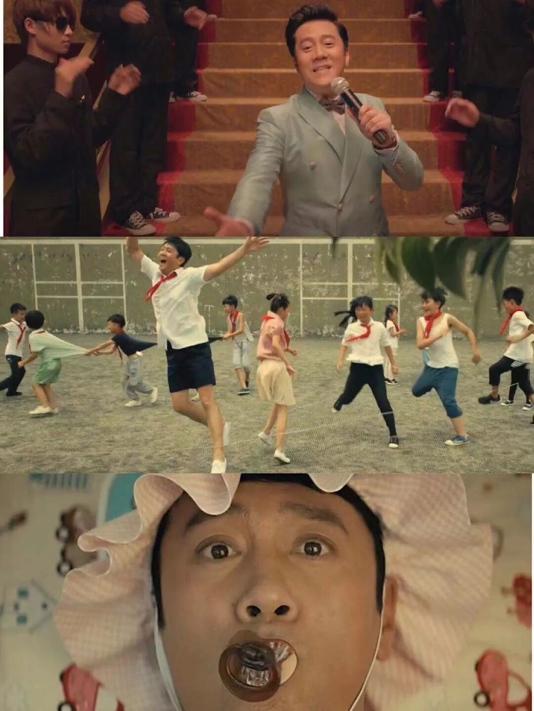 他调侃自己的成名作,录了一个《蔡国庆送你365个“不”祝福》的推广曲,成了“专注做菜20年”的大反派蔡老板。他在不到2分钟的MV里换了6套造型,在严肃的黑衣保镖簇拥下蹦蹦跳跳地唱歌,穿着白衬衫、系着红领巾跟小学生跳皮筋,暴打男主角“逞凶斗狠”……非常有“网感”。