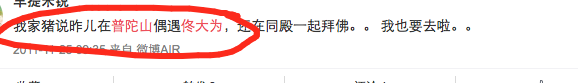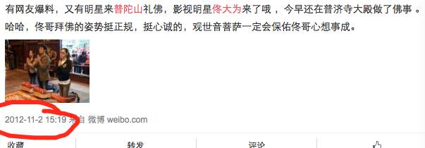 扒爷在微博里搜了搜发现还真是,每年10月份前后佟大为都会去普陀山。