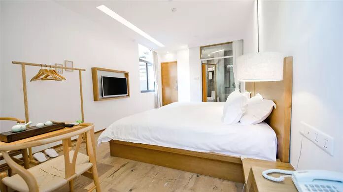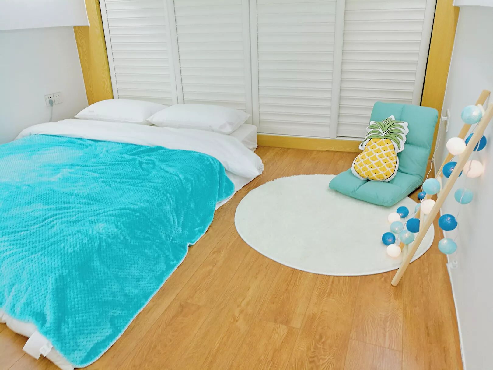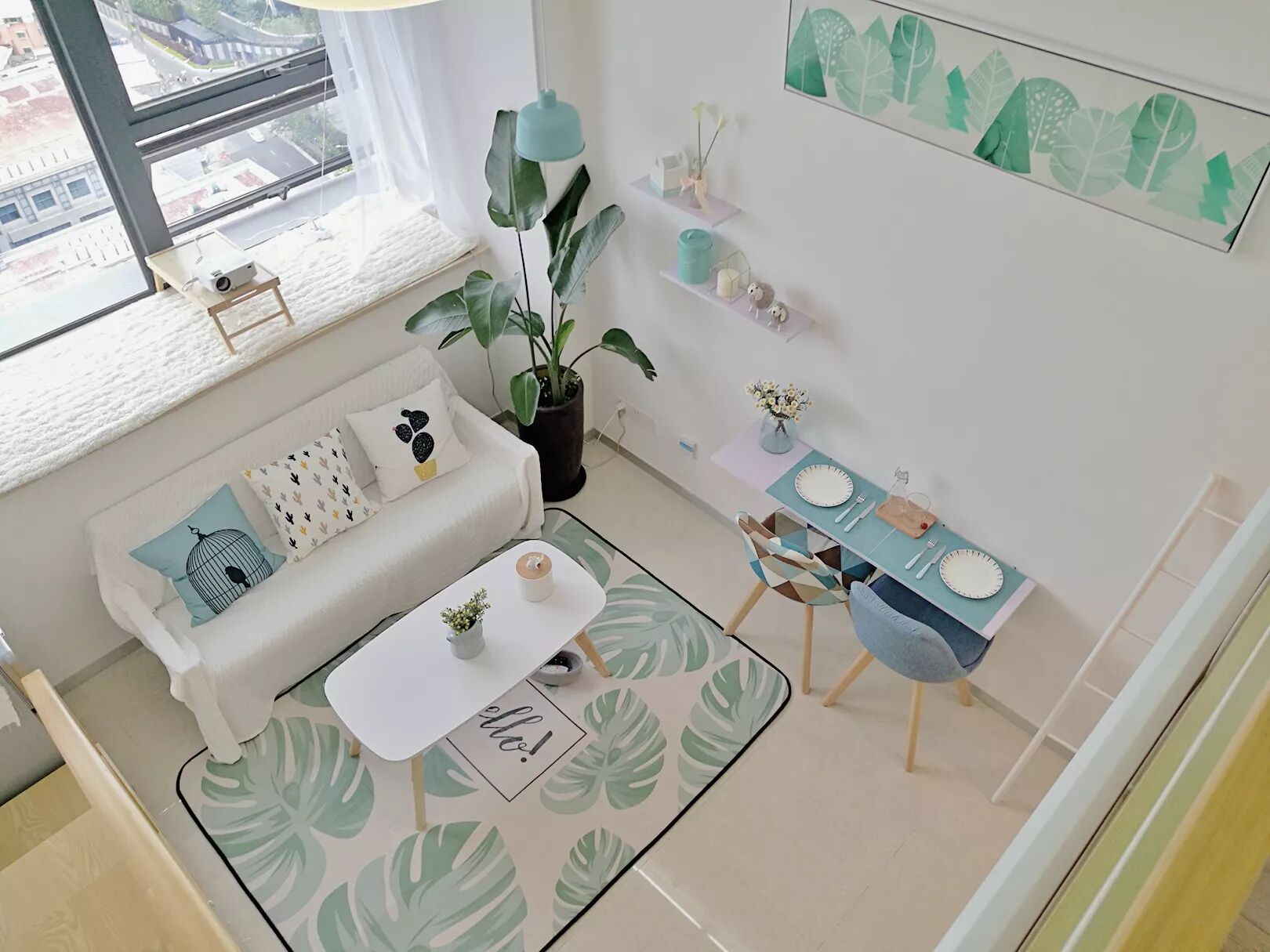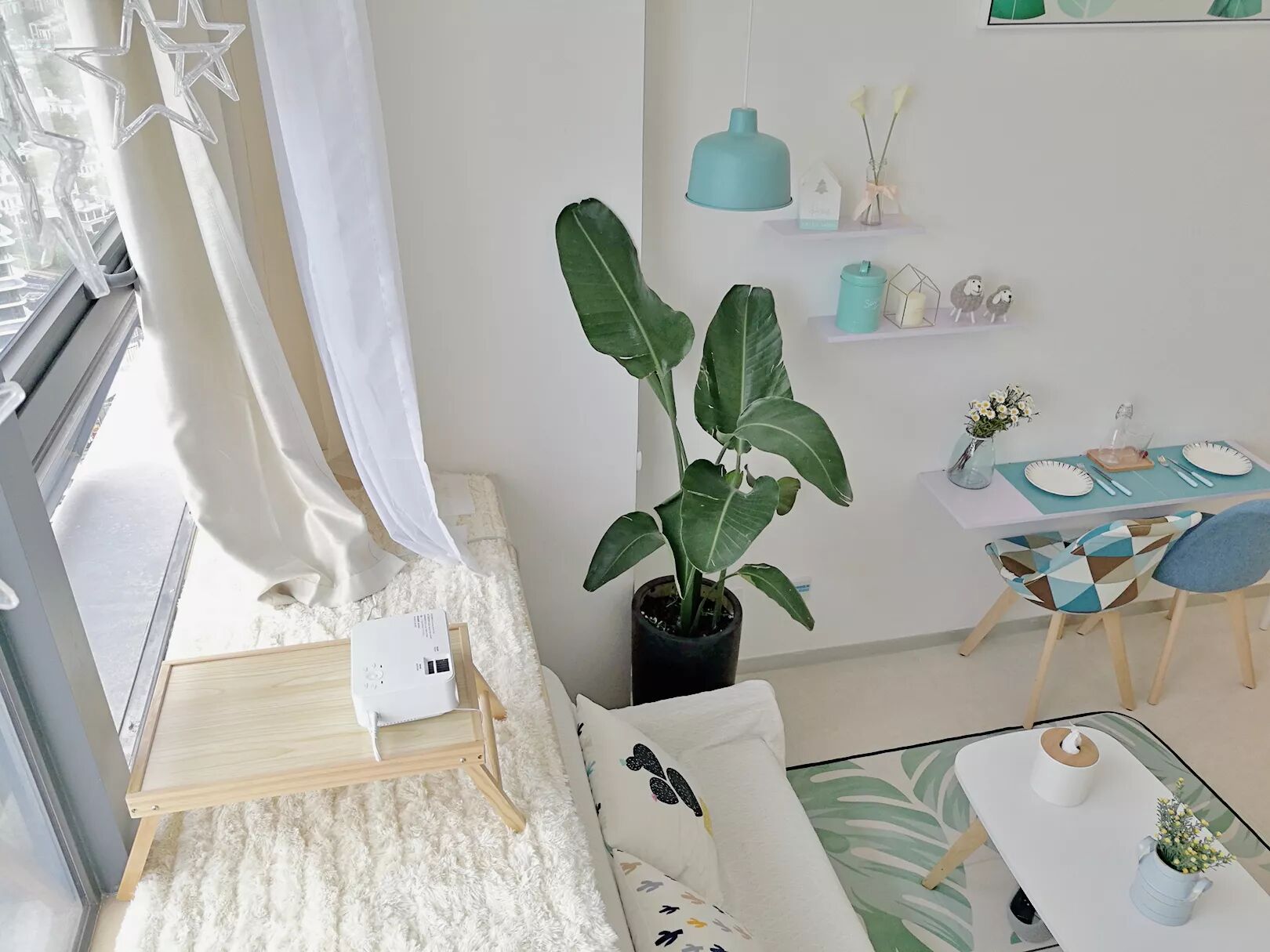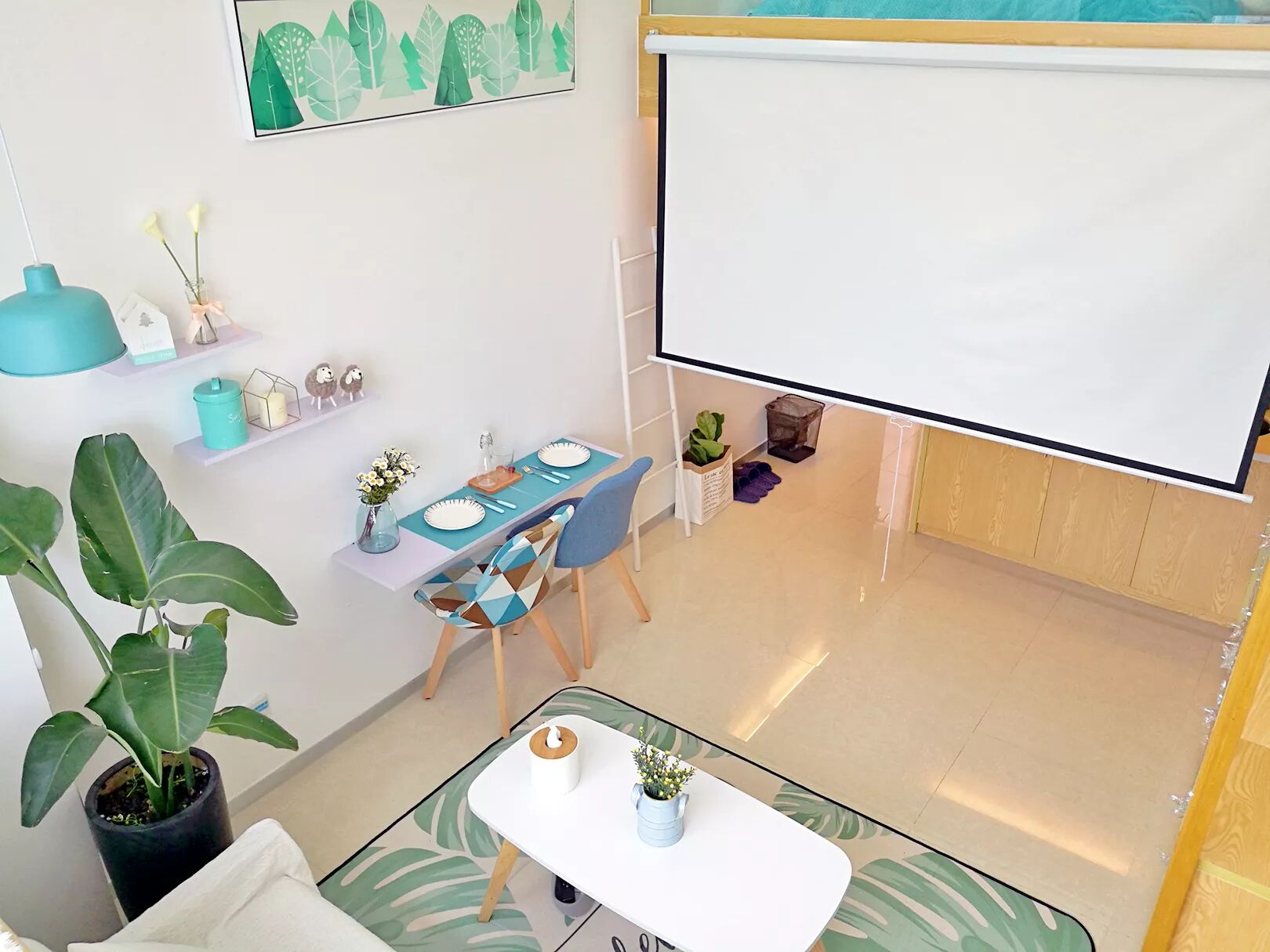 小柒家以家为概念设计,进入民宿内能感到满满的北欧小清新风格。四米挑高、大大的飘窗和100寸的投影网络电视足够你窝在这里一整天了吧。