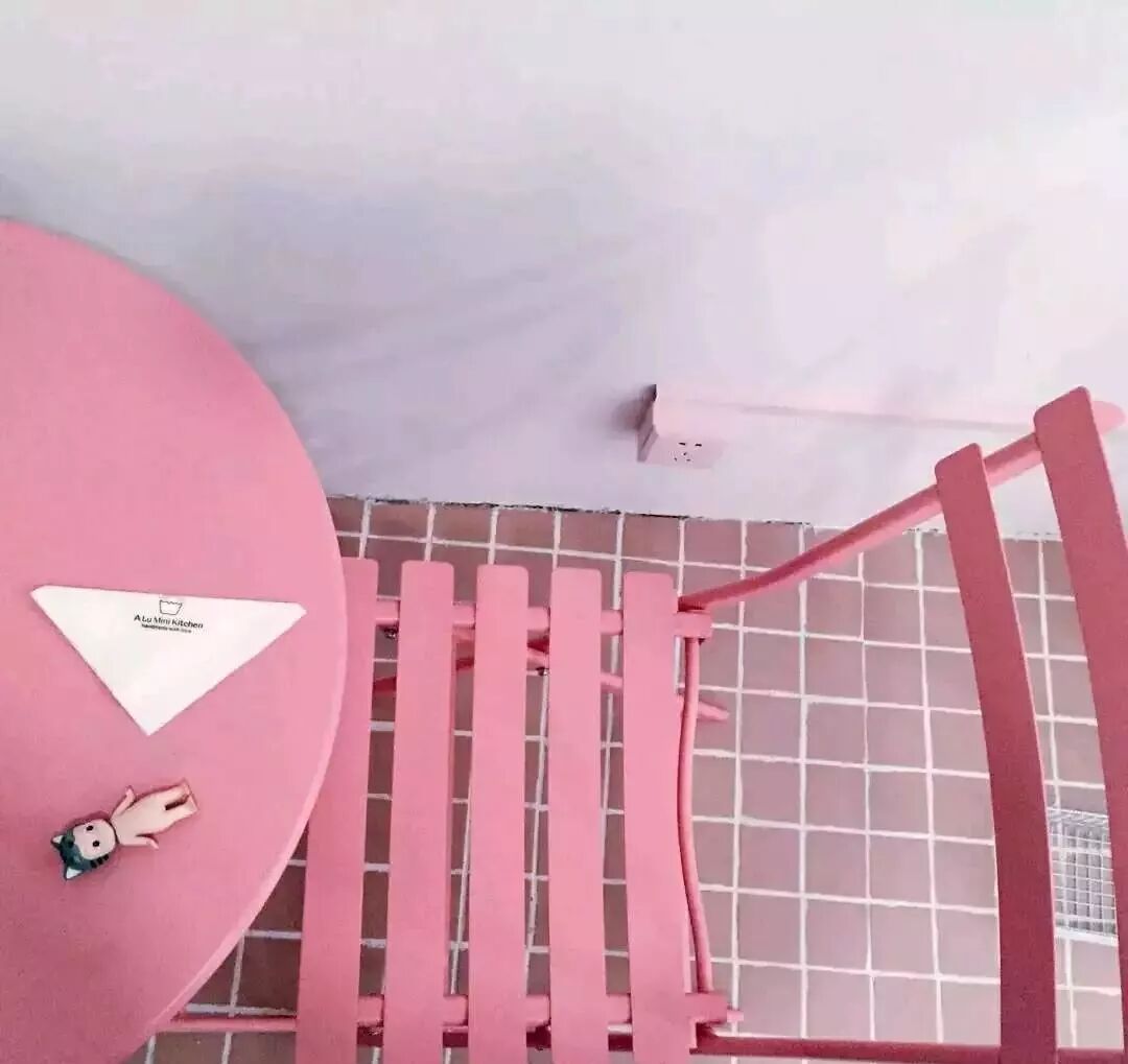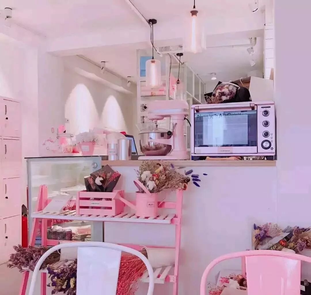 @林阿叔:装修是时下非常红红火火恍恍惚惚的火烈鸟元素,不仅墙壁粉红色,餐桌、餐椅、厨师机、烤箱等等一系列都是粉红色的,少女心炸裂。