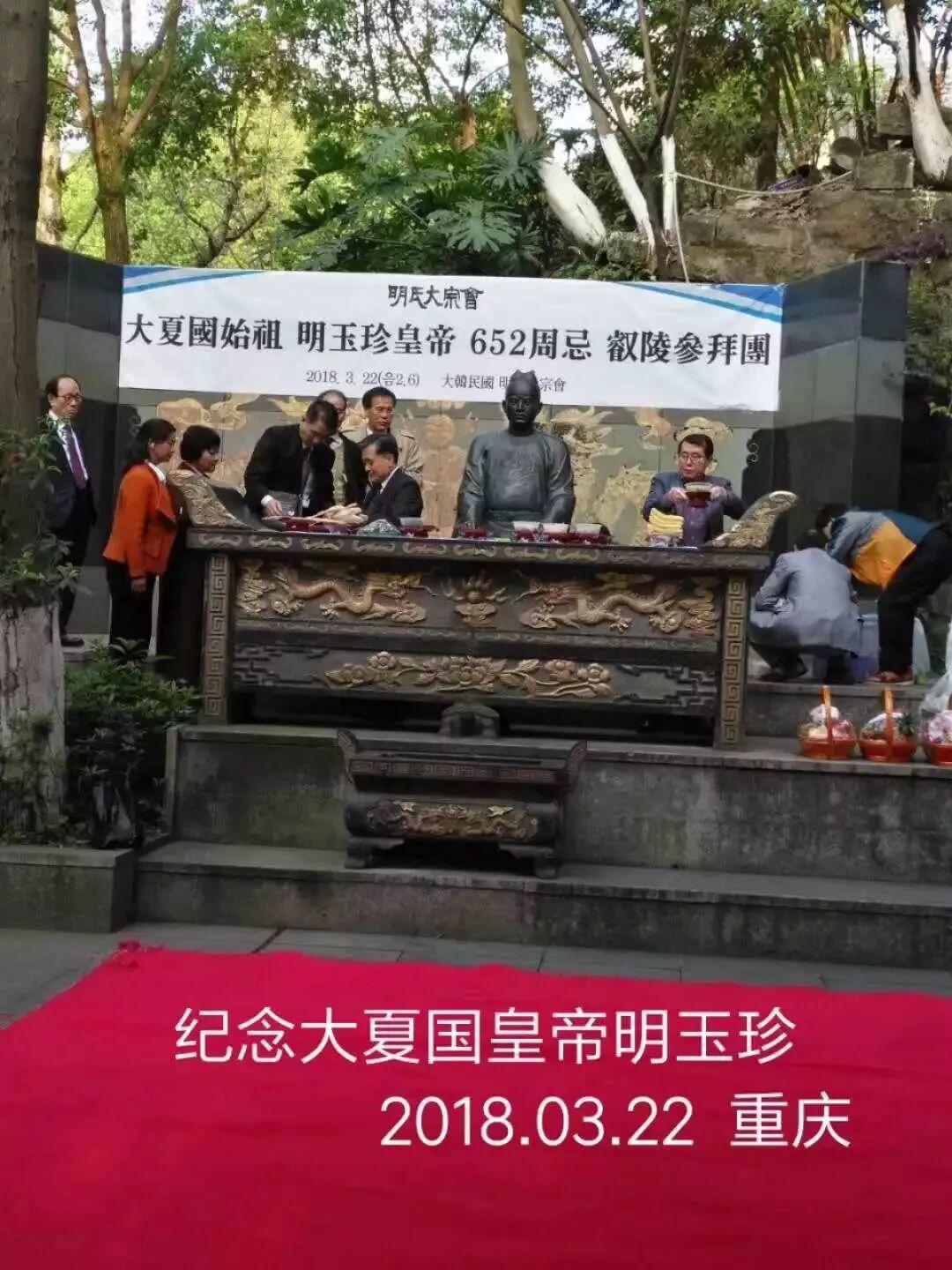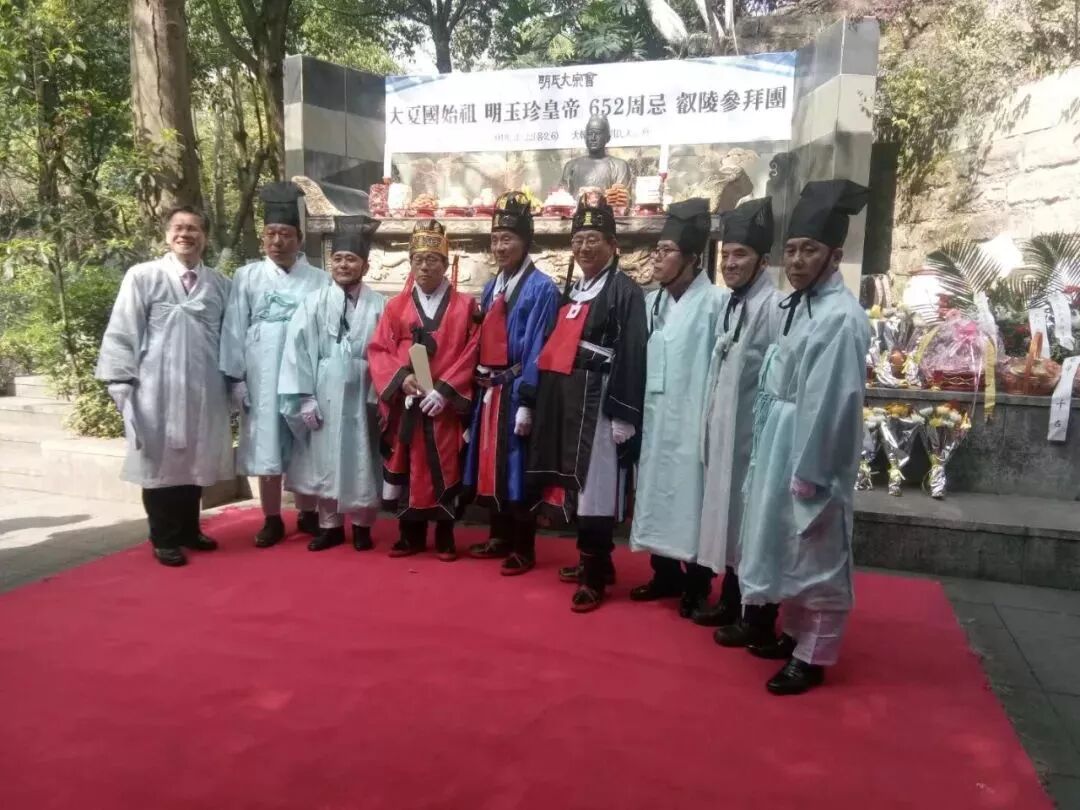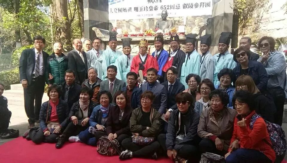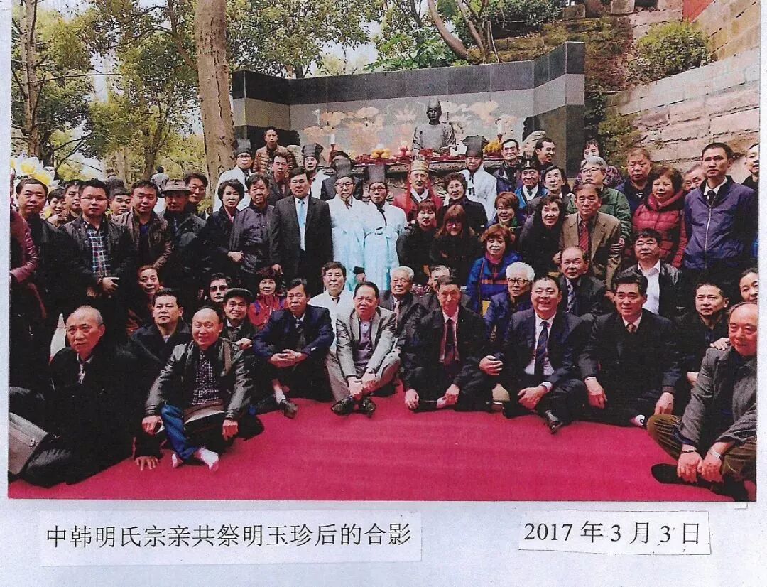 ▲图为中韩明氏宗亲共祭明玉珍后合影,左二为韩中明氏大宗会会长明光吉