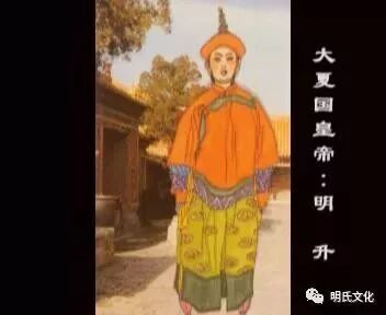 二是明昇,明玉珍逝世后,由10岁的儿子明昇继位,政年号为开熙,其母彭氏被尊为皇太后,垂帘听政。1372年,明昇举家27口,一同迁往高丽(今朝鲜)。明昇的后裔在朝鲜繁衍为4大公派,约4万之众,遍布南北朝鲜半岛。湖北随州人明从睿、明从哲,为大夏国参知政事,明从政、明从德为大夏国枢密院副使。