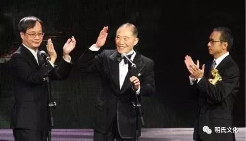 ▲图为2009年明骥获第46届台湾电影金马奖终身成就奖:小野、吴念真为明骥颁奖