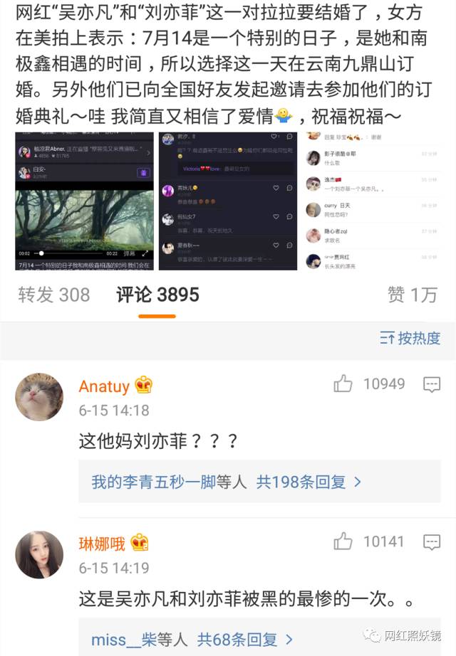 咳咳~不好意思,妖姐应该说是快手吴亦凡和快手刘亦菲要结婚了,你们知道不?