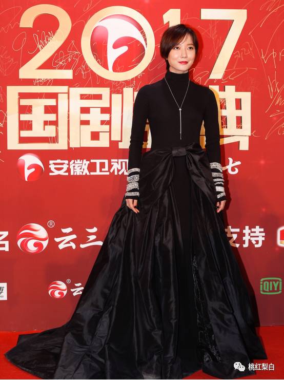 她好像特别偏爱这种款包身款的礼服裙,整身大面深黑色,视觉效果就很显老气,配上她十几年如一日的短发,整个人年龄起码加了5岁朝上。这种亮面大蓬裙处理不好也很容易显得没质感,乍一看很像一颗“红毯上的黑色平包菜2.0”。