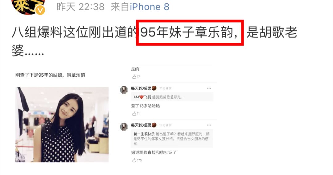 爆料进一步升级,直接称女方是刚出道的95年妹子章乐韵。