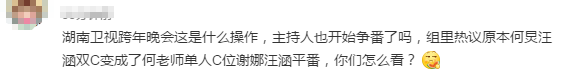 最近,有网友发现湖南卫视跨年主持团海报,一开始汪涵何炅双c位,后来变成何炅主c,汪涵和谢娜平番,引发汪涵在台里地位没有何炅高的猜测。