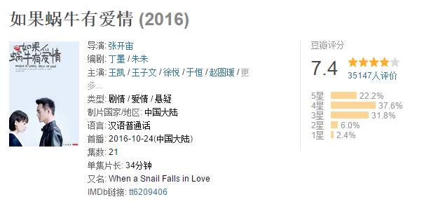 把一本小言通过改编格局大了很多。破案为主言情为辅。画面制作唯美、色彩构图考究等方面,被赞为电影般的质感。