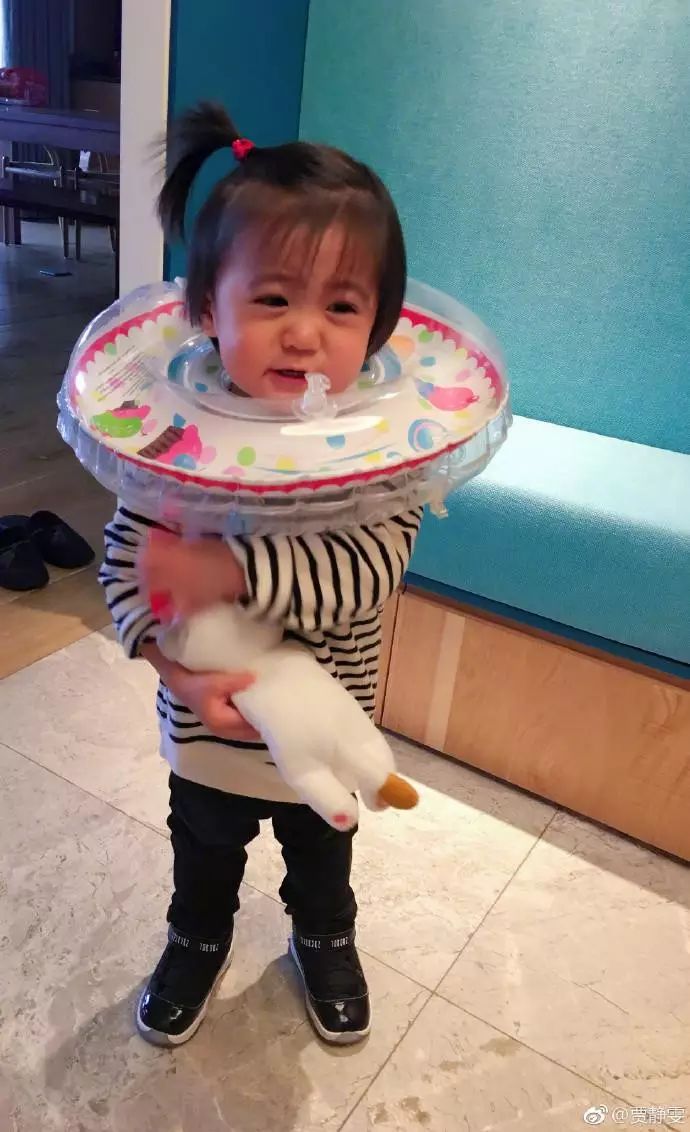 不到一周,贾静雯30日又在微博上晒除了咘咘姐妹二人游泳照。因为这个游泳乐园是经常去的,所以咘咘姐妹很享受,泡在水中不愿意离开。但bobo套着游泳圈只露头,手臂都在下方!