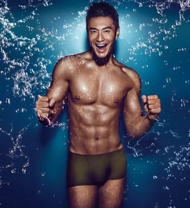 而大陆代表就有黄晓明,2014年黄晓明为内衣品牌拍广告,变身肌男兼仅以底裤仔上阵,大晒八旧腹肌,搞到万千少女口水流一地,佢仲要嚟招腿张开,雕形毕露,相当雄伟!不过当时就有网友质疑话系P图,真相,相信只有佢老婆Angelababy先知!
