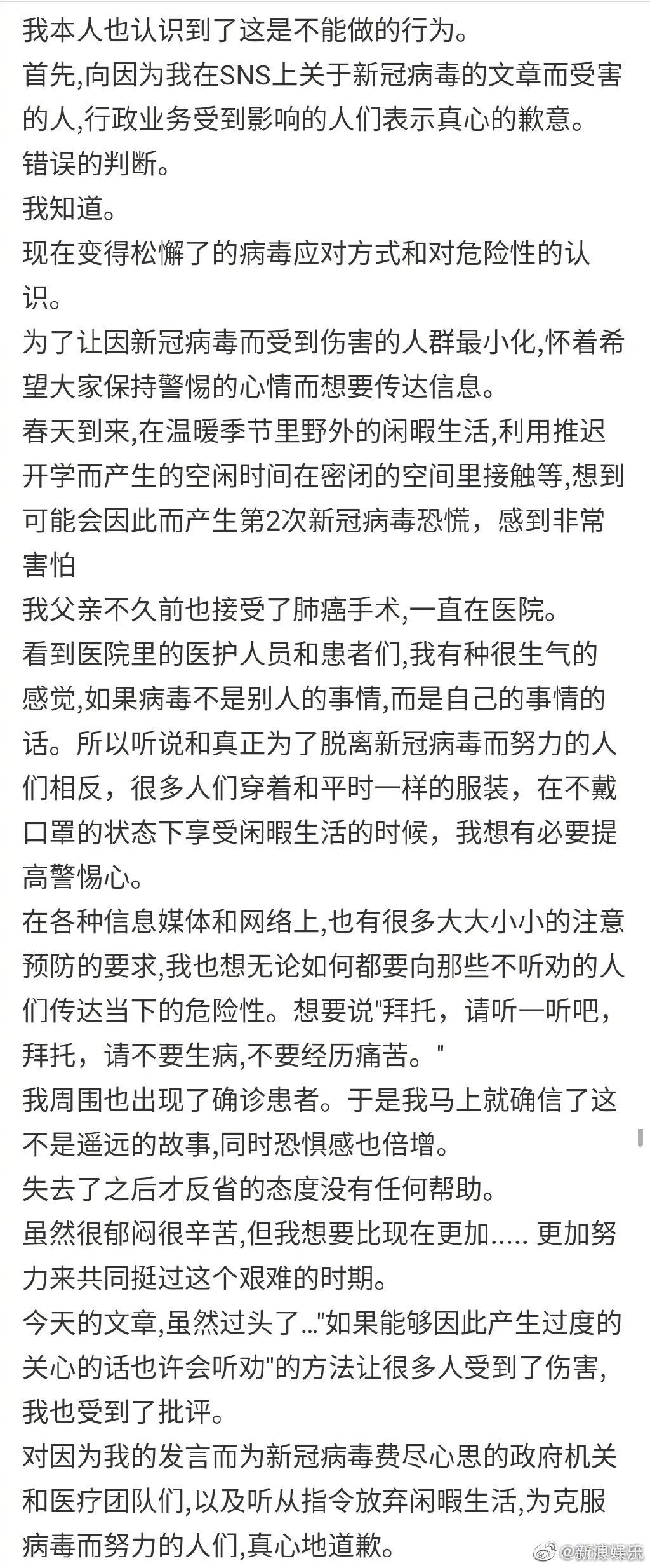 引起众怒后,金在中发表了一个道歉长文,“今天的文章虽然过头了,但如果因此引起过度关心的话,或许有人会听劝。”