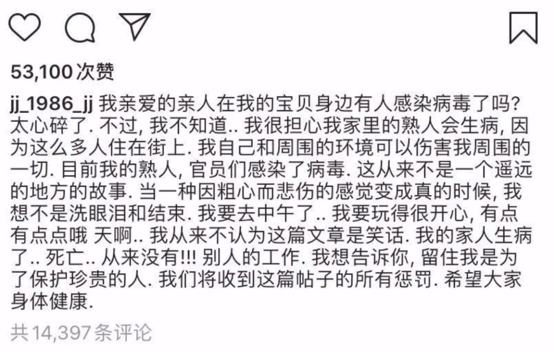 他有粉丝的爱,有花不完的钱,不然,还真想不到他为什么可以以无所谓的态度开一个新冠肺炎的玩笑。