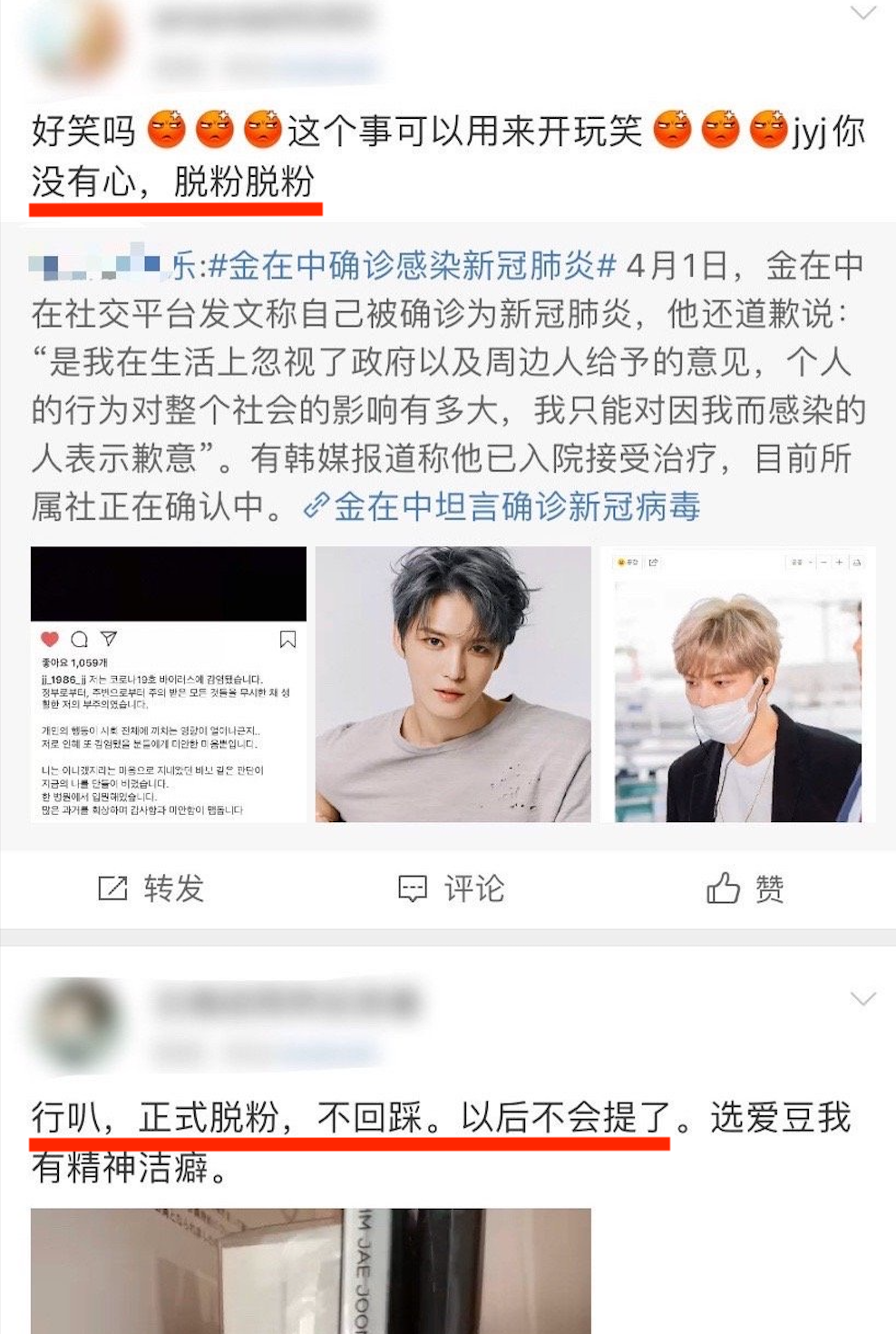说白了就是自己作得急于坏了自己的名声,旁人也不用白献殷勤了。一时间,微博脱粉广场全是金在中粉丝现身脱粉。