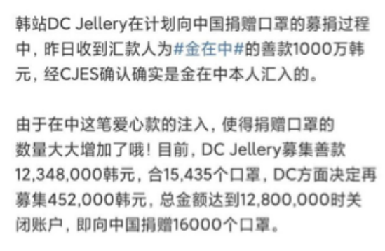金在中在中国实际上并没有太多活动,这笔迅速的捐款让很多东方神起老粉流下时代的眼泪。