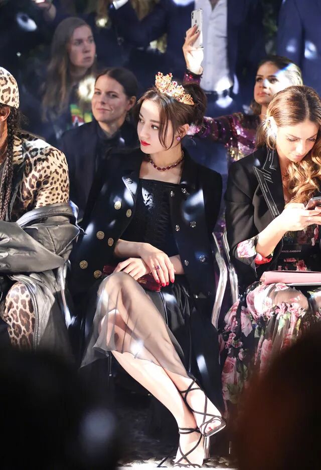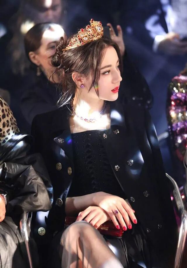 秀场上,热巴以一身黑色薄纱修身礼服妙曼出场,头戴皇冠女王范十足。