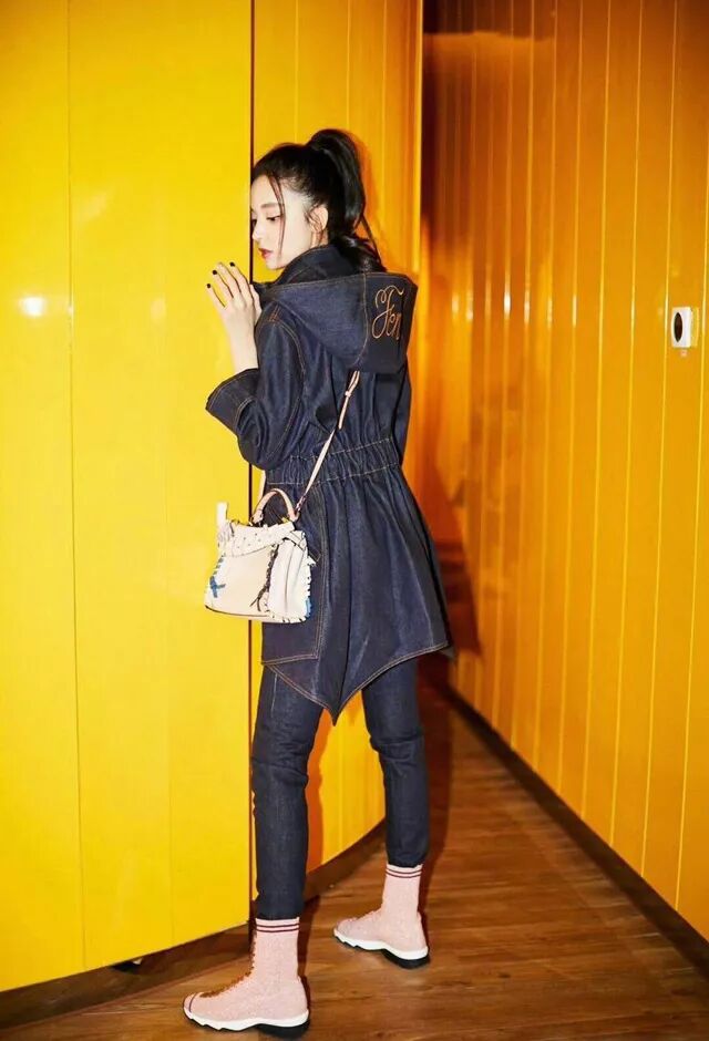 出发前的机场搭配,古力娜扎身着一套Fendi深蓝色牛仔内搭白T,脚踩Fendi袜靴。虽说袜靴会曝露腿的粗细,但娜扎显然没在怕的,靠颜值气质hold住了这套街拍。
