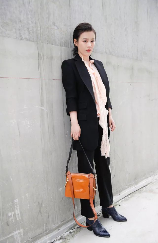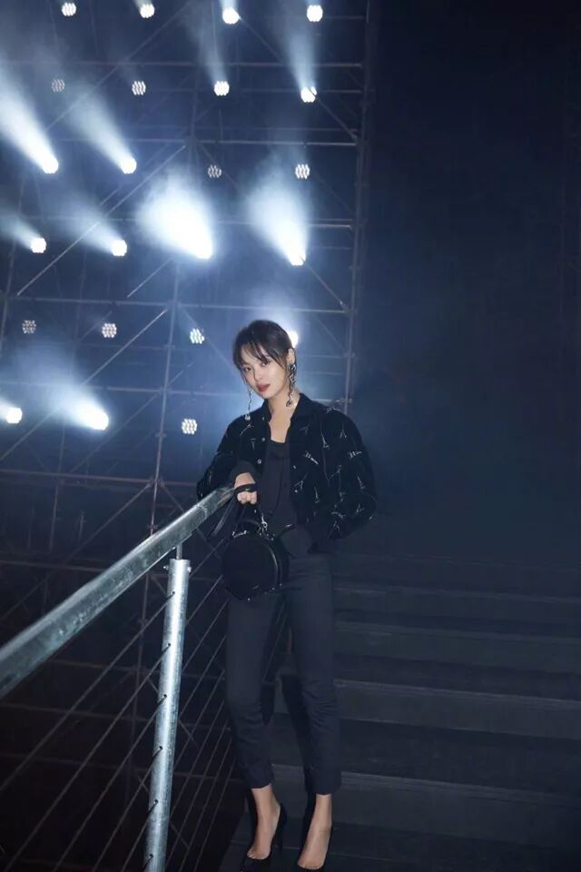 现身秀场时身着一身利落黑色套装,内搭飘逸斜裁衬衫,比起中规中矩的衬衫款式更多了几分韵味。一头微微扎起的短发,更加利落有型,整体感觉精致又霸气!